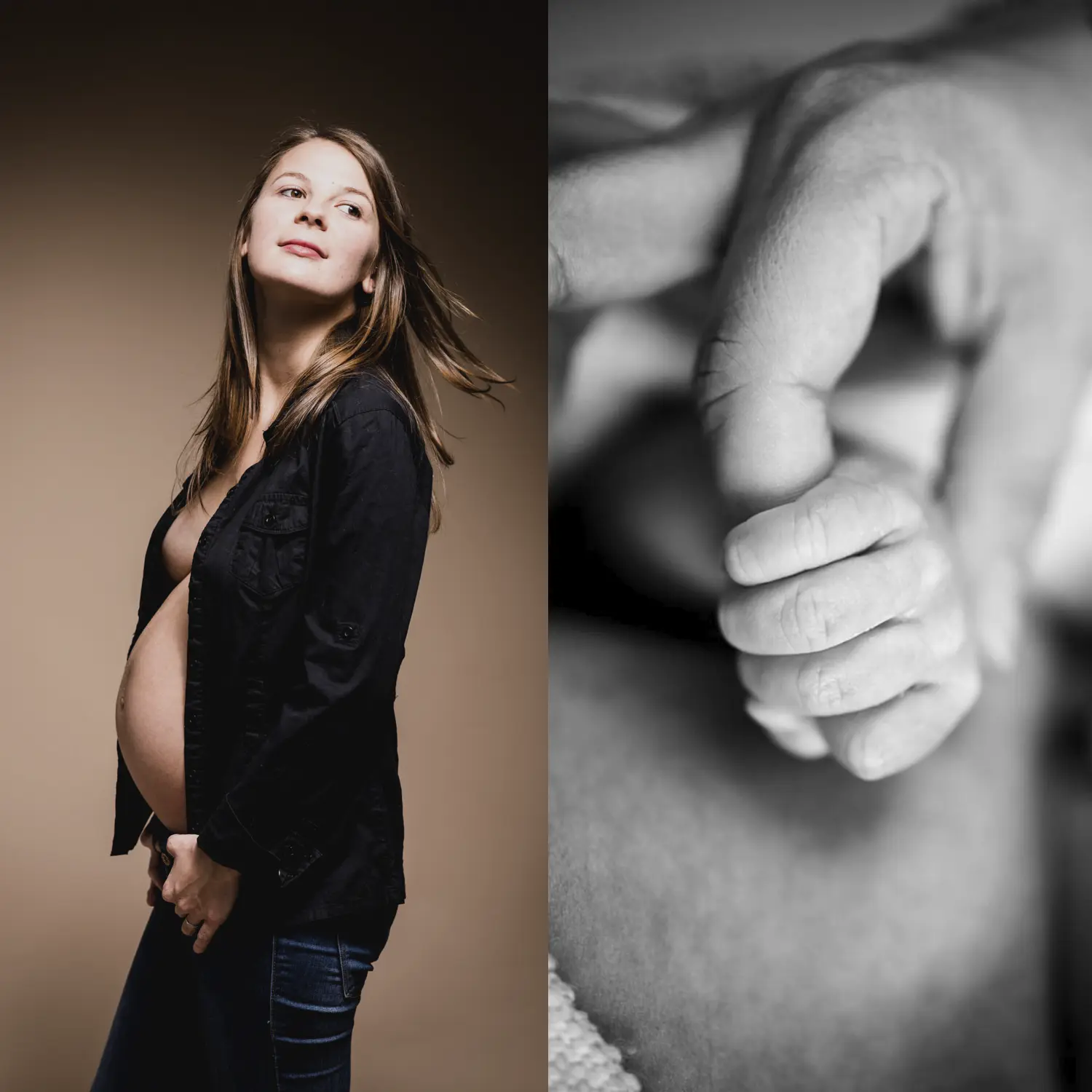 La séance Duo Maternité & Bébé réunit les deux grands moments de cette aventure :